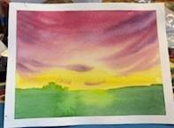 The first watercolour is supposed to be a sunset; the second, flowers of no particular name.