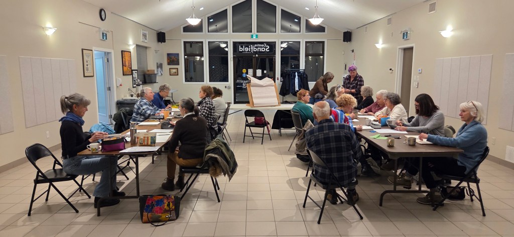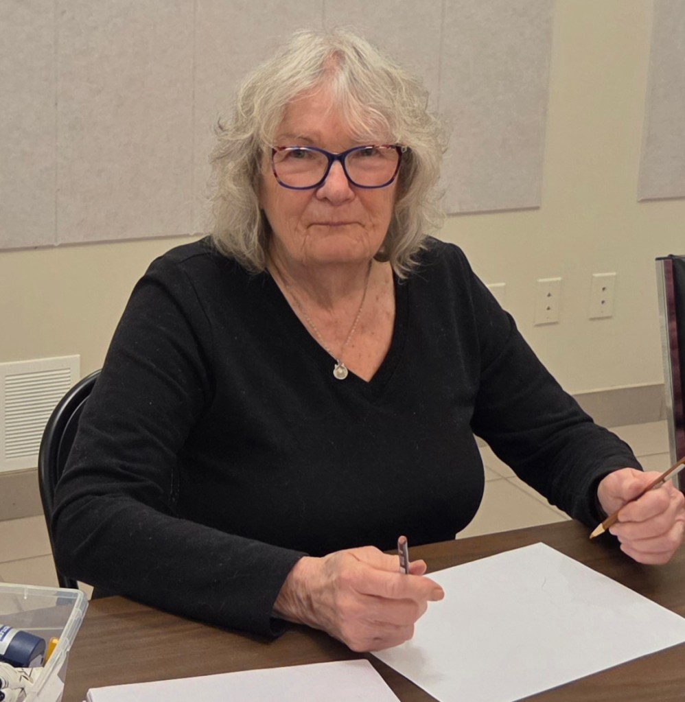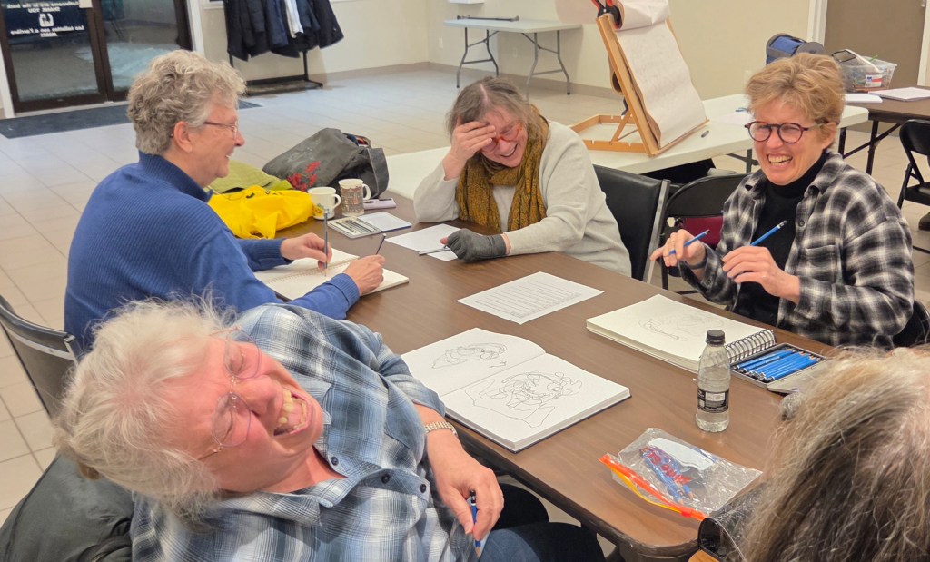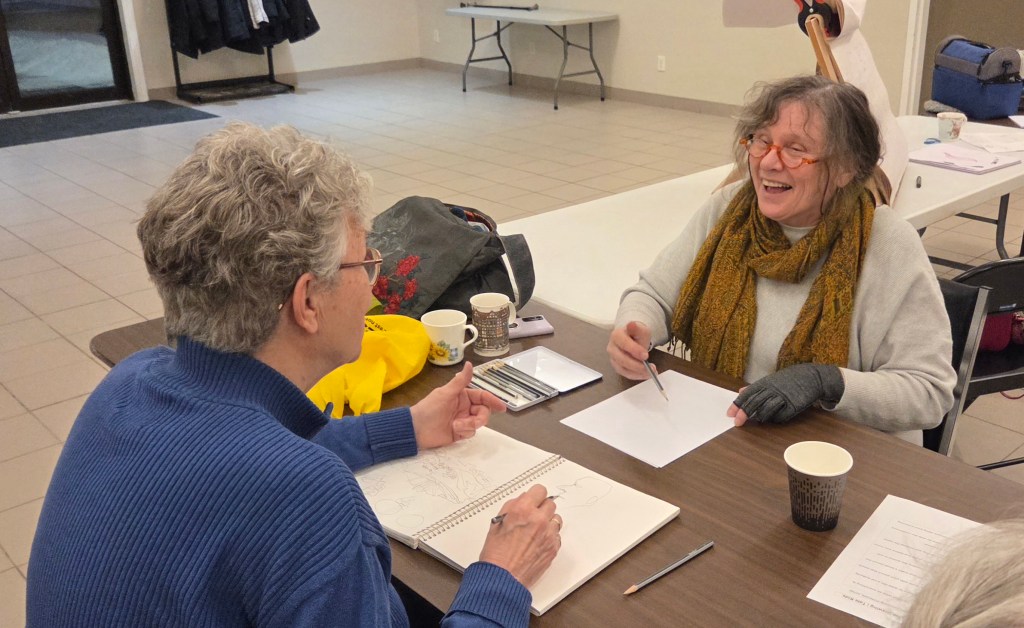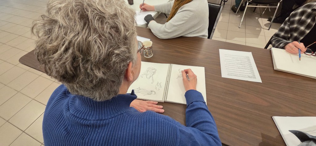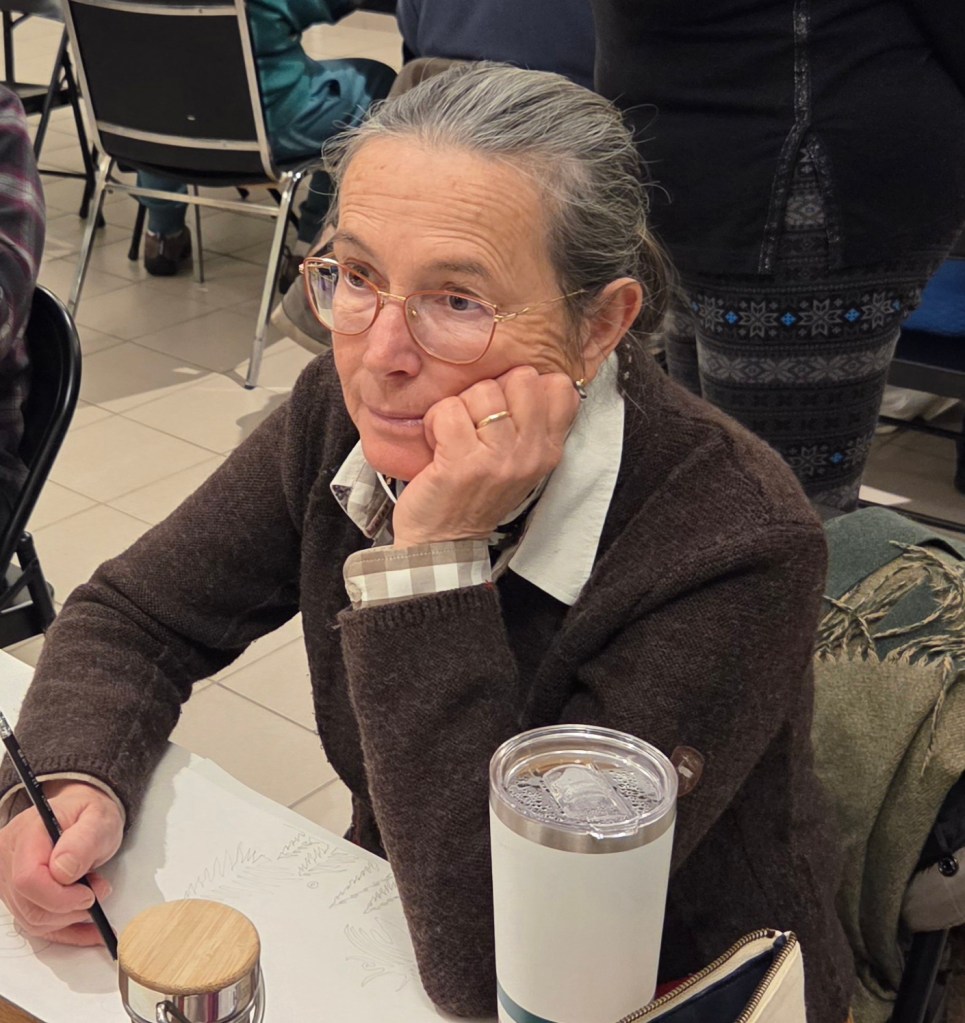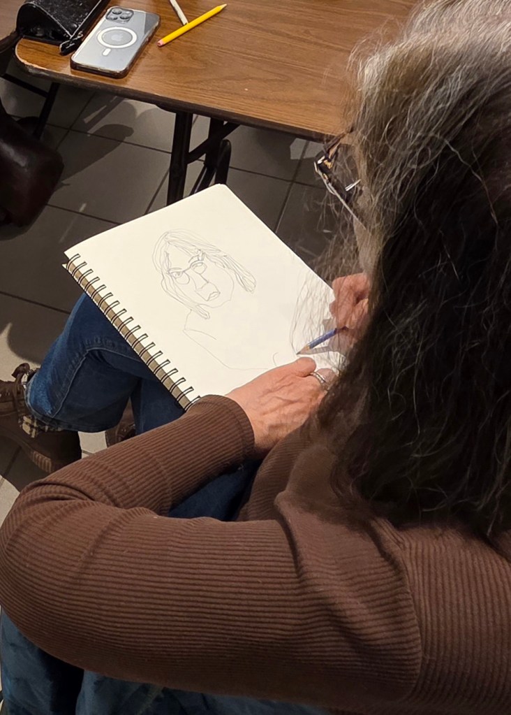 Susan Irving ably led the event with newsprint, pencils & years of drawing experience.